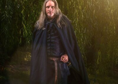 He is a Master Of the Black Arts, a member of the Order Of Ashrock and has the natural ability to capture individuals’ and groups’ souls with ease. His training with the Order of Ashrock began late in life after Lindgrave spent the early part of his years fighting the Orcs and Goblins and other foul beasts on the borders of Kyria using the rather old-fashioned long sword (something he still carries now and again). As well as being a master of the Black Arts, he is also a Sword Master, having trained in his youth with the Standing Army.